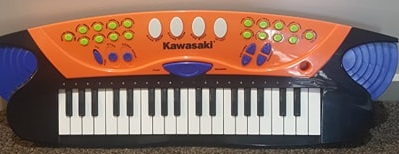 22 key keyboard. Has built in rhythms, drum sounds and the ability to change the instrument sound. Suitable for ages 3+