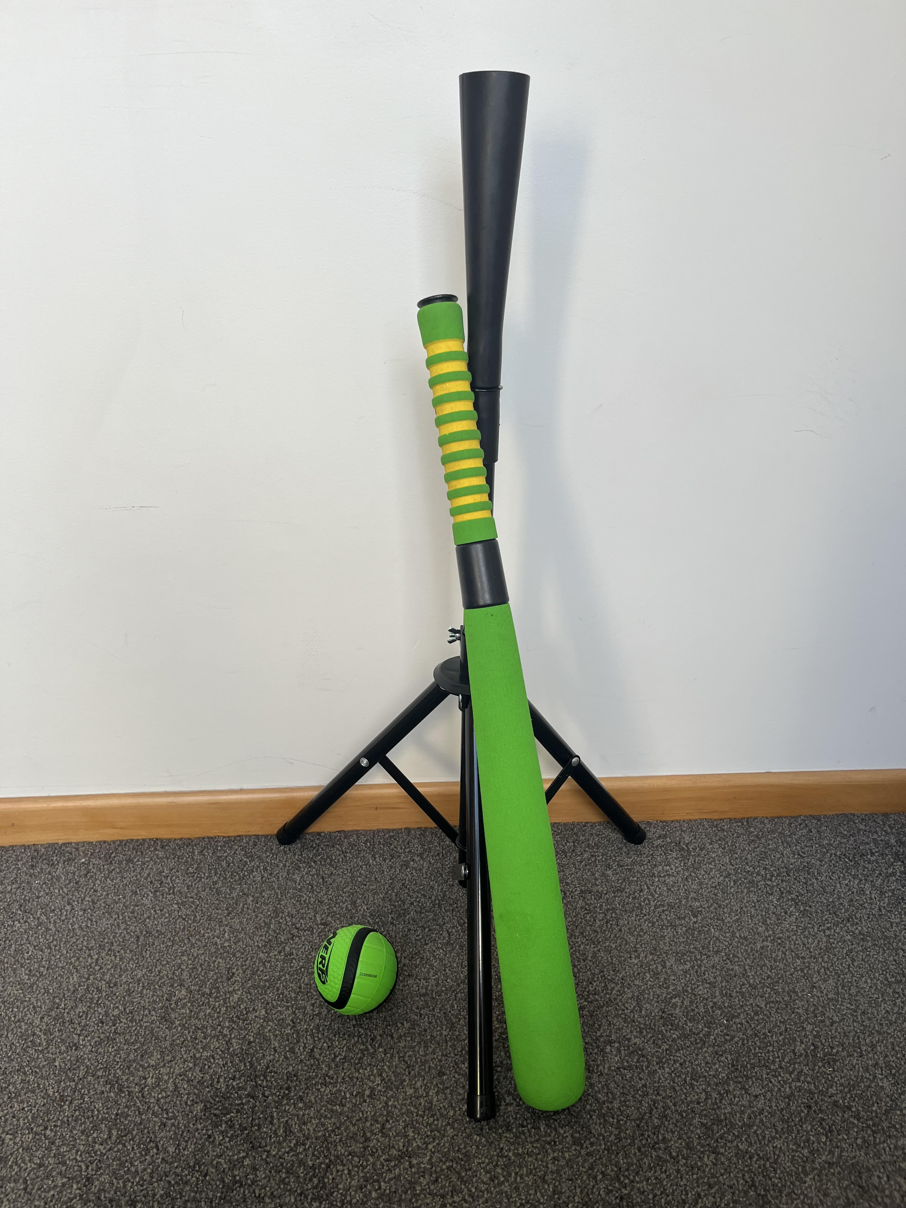 This T-Ball set is great for beginners. Comes complete with stand, ball and bat. The bat is nice and soft for little hands and light to lift